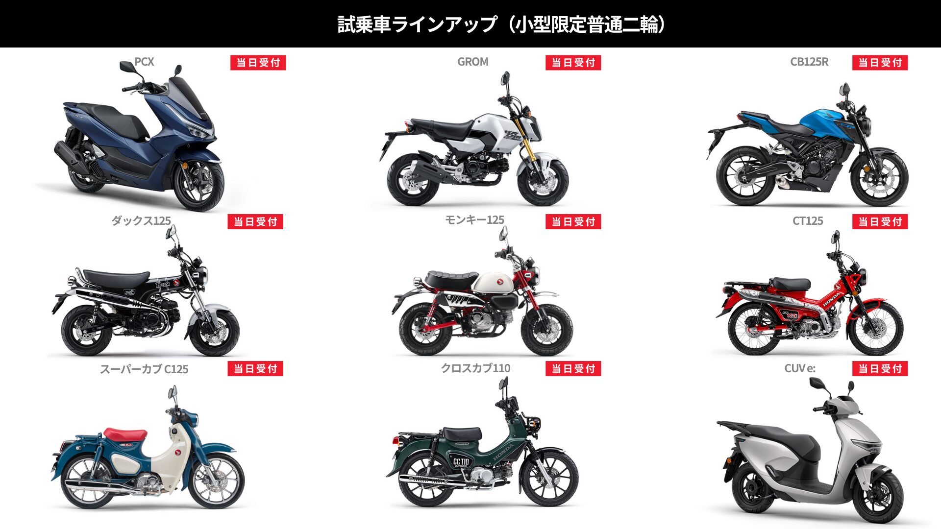 ※仕様、カラーリング等は予告なく変更する場合がございます。また、トラブル等によりお並びいただいたモデルにご試乗いただけない場合がございますので予めご了承ください。