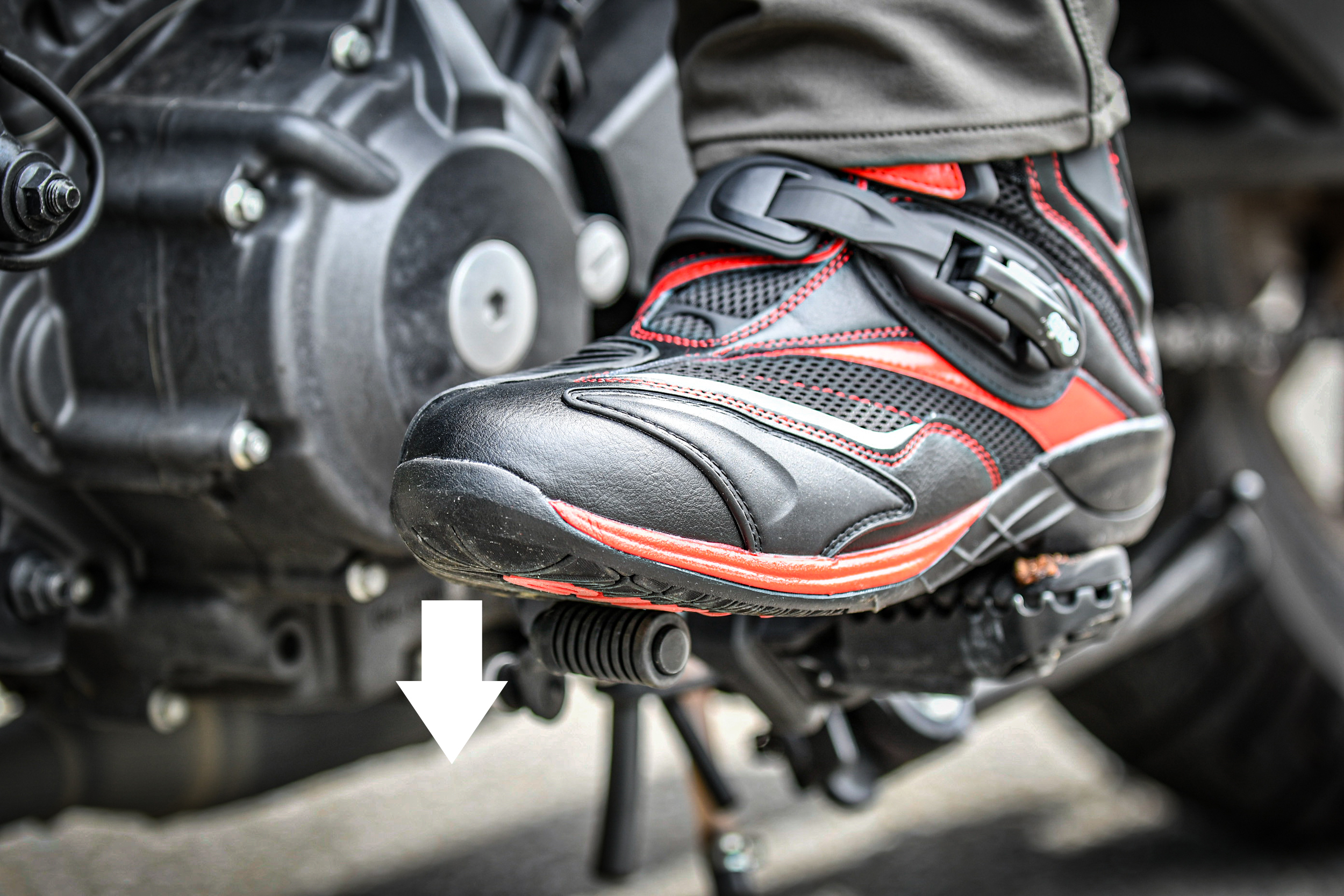 Honda E-Clutchはクラッチを自動制御しているため、走行中はAT車とは違ってシフトアップ・ダウンの操作はライダー自身がペダル操作で行います。 このシフト操作の時でもクラッチレバー操作は一切不要です。
