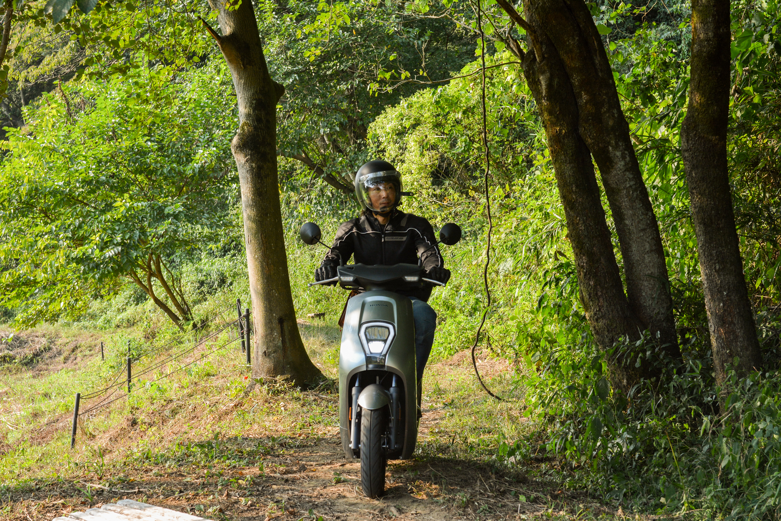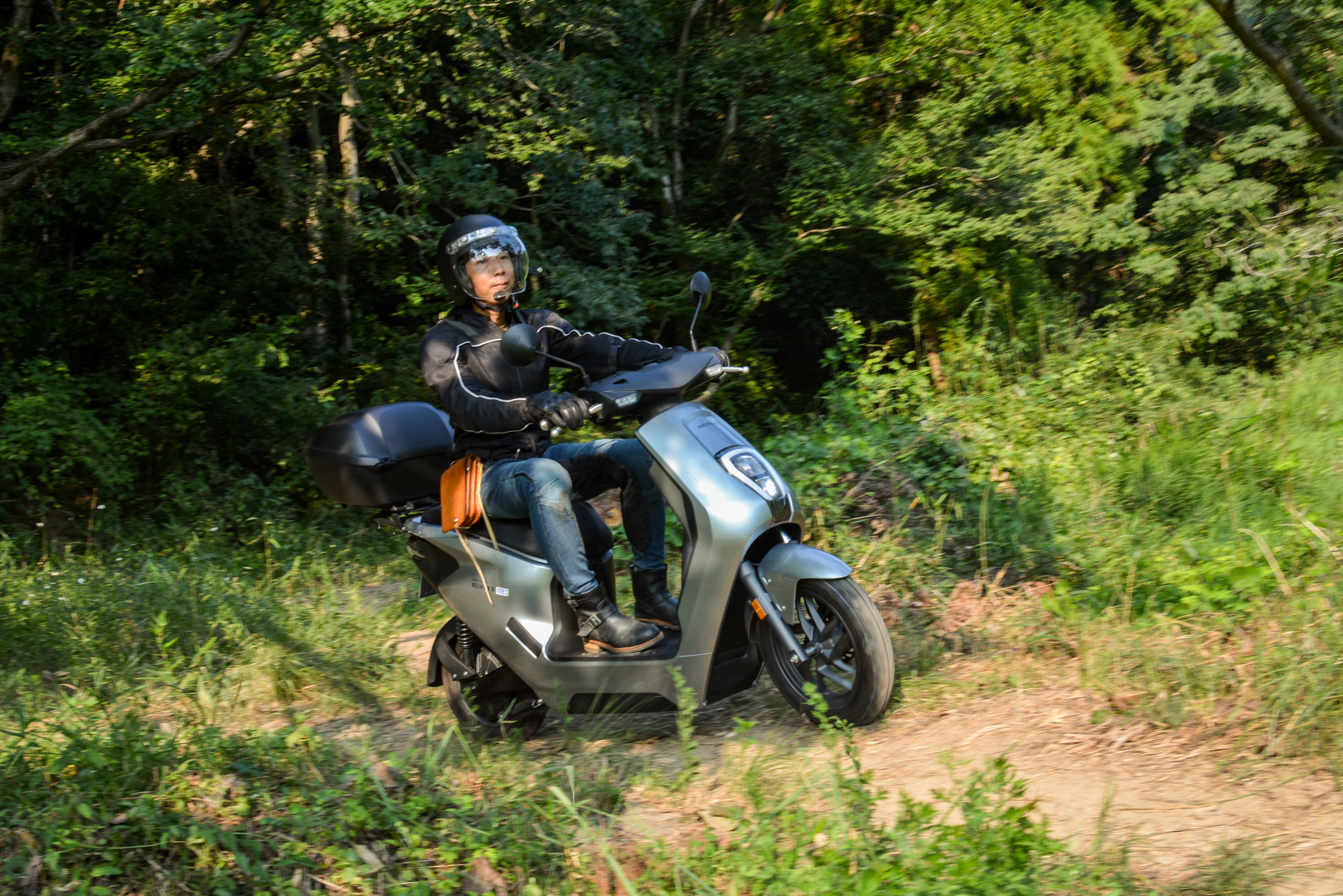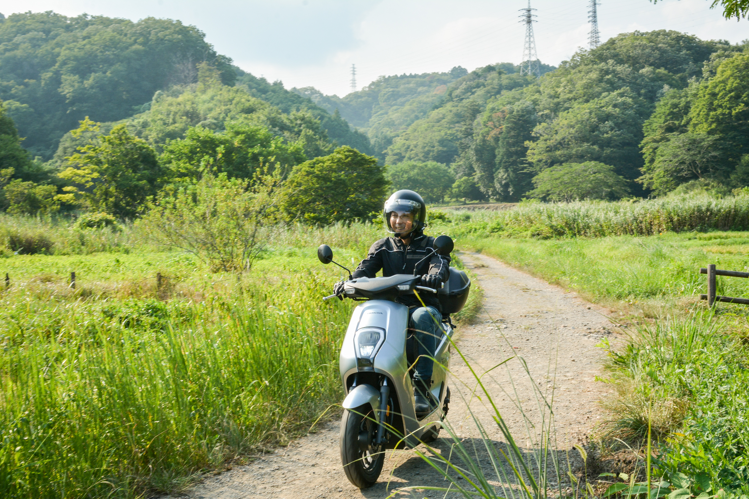 最近ハマっているというのがEM1 e: の機動力を活かし、プチアドベンチャーツーリングに出かけること。 EM1 e: は原付きクラスのバイクなので、扱いとしては自転車に近く、郊外であれば案外走れる場所があるんだとか。 珍しいEM1 e: の楽しみ方をされていました。