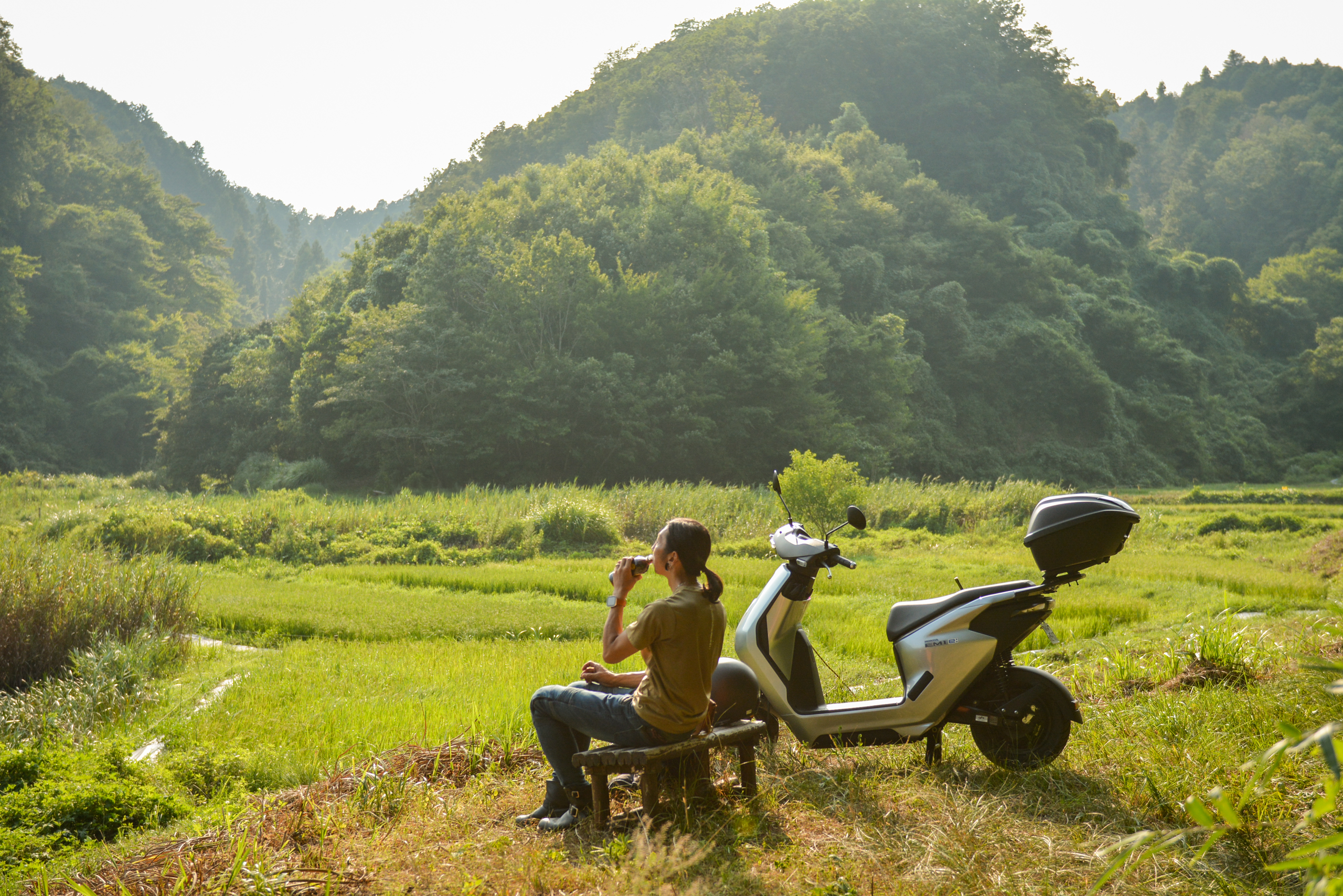 近未来的なスタイルのEM1 e: だからこそ、自然の豊かな風景の中で映える一面があります。 こういったライダーらしい楽しみ方ができるのも、オーナーしか知らないEM1 e: のメリットだと思います。