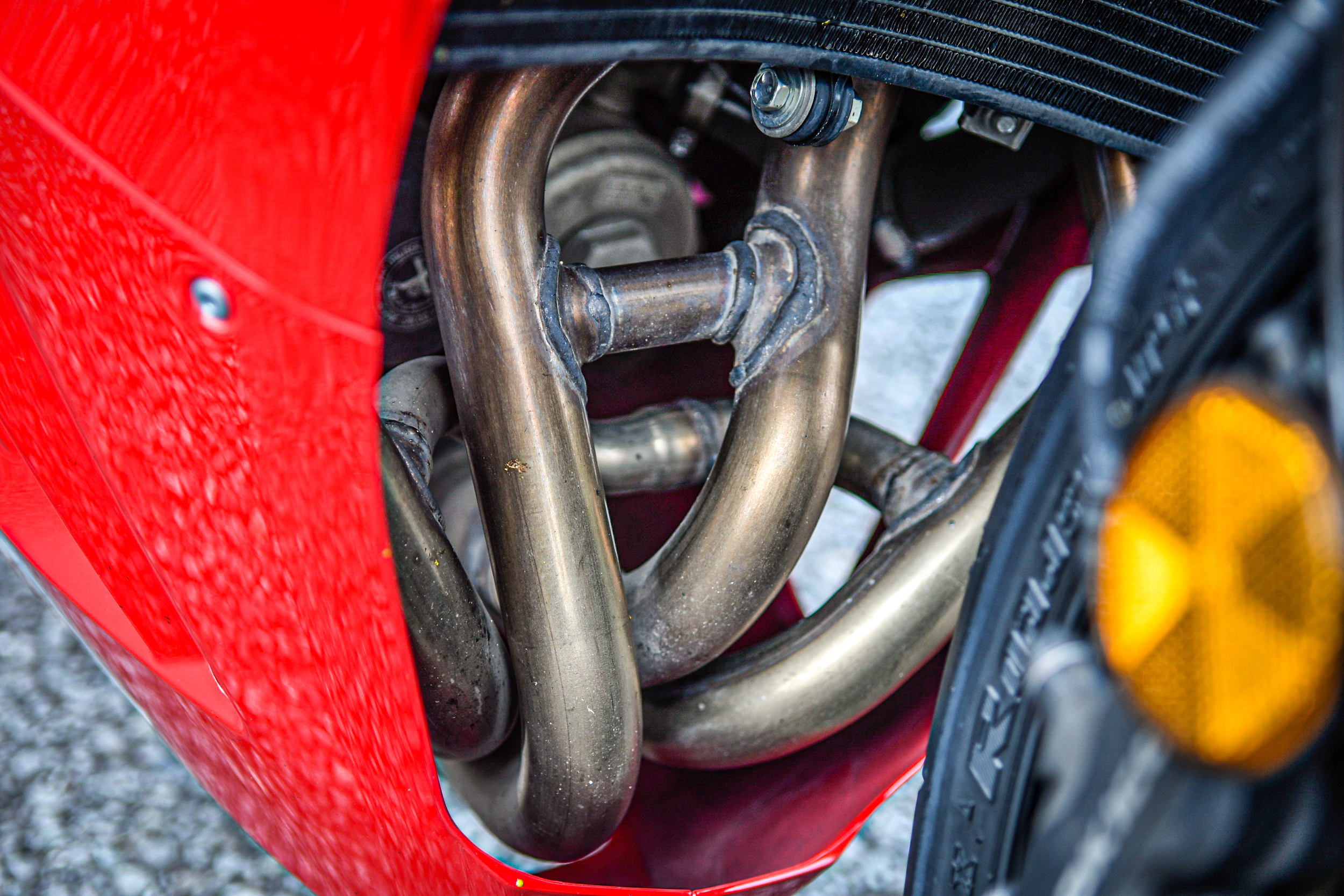 そのためにエキゾーストパイプは複雑に連結。Hondaがレースで培った技術が存分に投入されていることを外観から伺えるポイントのひとつでしょう。