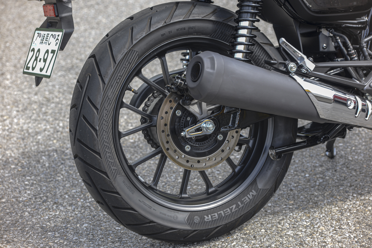 それにGB350 Sが幅広のラジアルタイヤなのに対してGB350は少し細い18インチを採用しています。