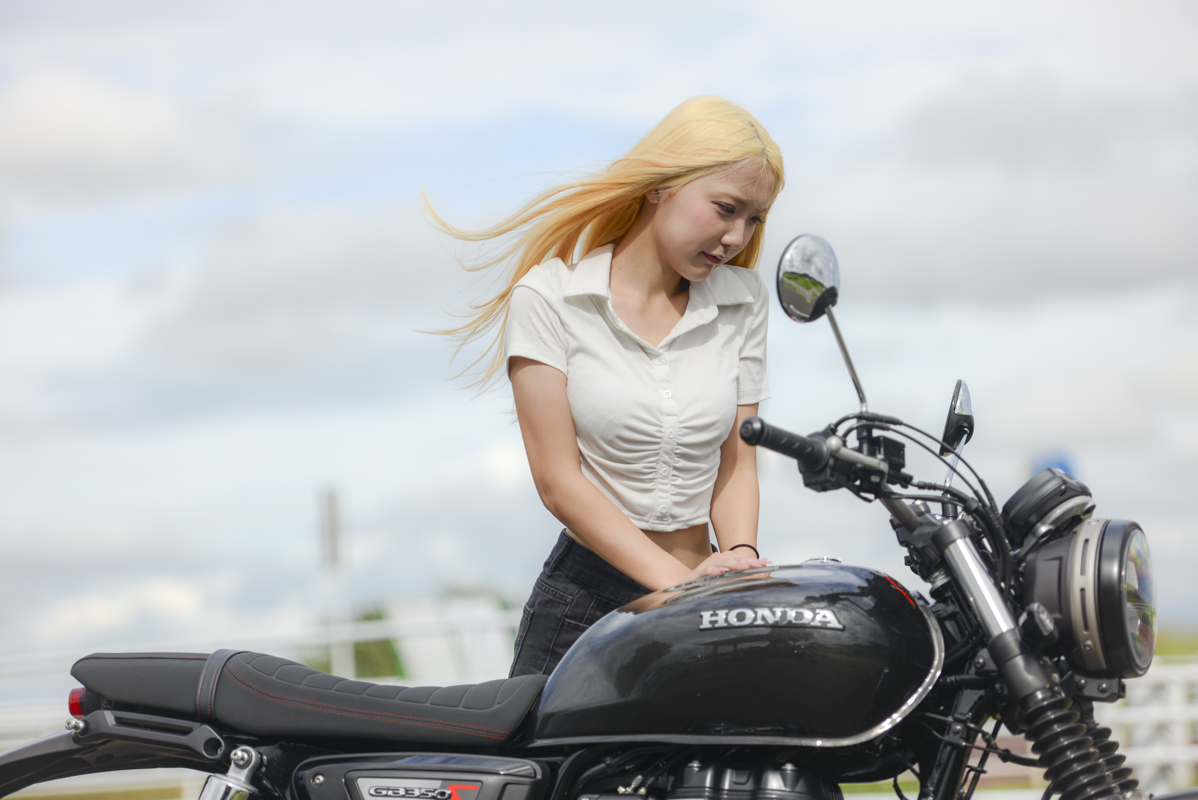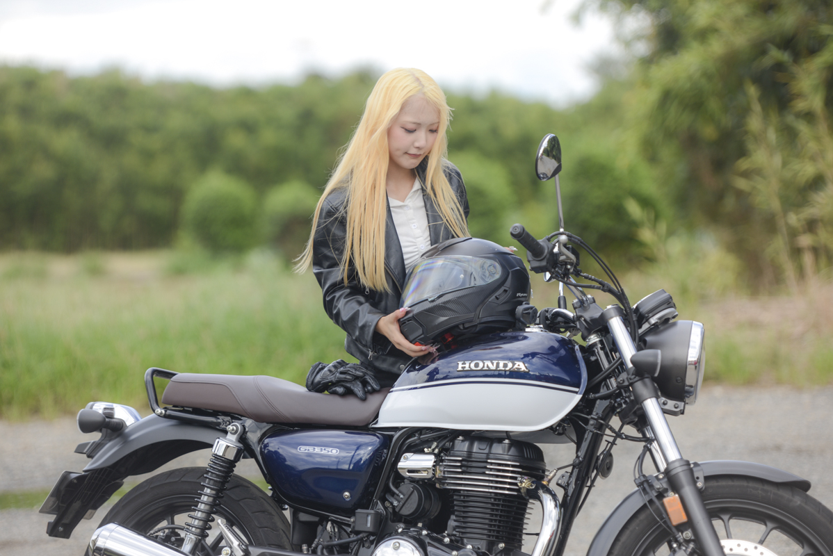 デザインはスポーツバイクみたいに主張が強いわけではないけれど、レトロな雰囲気がカワイイしバイクらしいスタイルも素敵だと思います。GB350って女子ライダーに良く選ばれているイメージがあったんですが、実際に見て女子が選ぶ理由が分かるような感じがします。