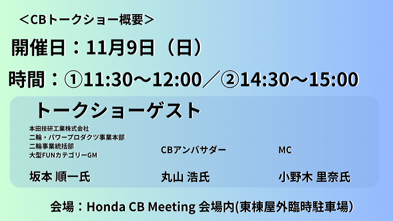 11月9日(日)に『Honda CB Meeting in Japan Mobility Show 2025』を開催いたします!