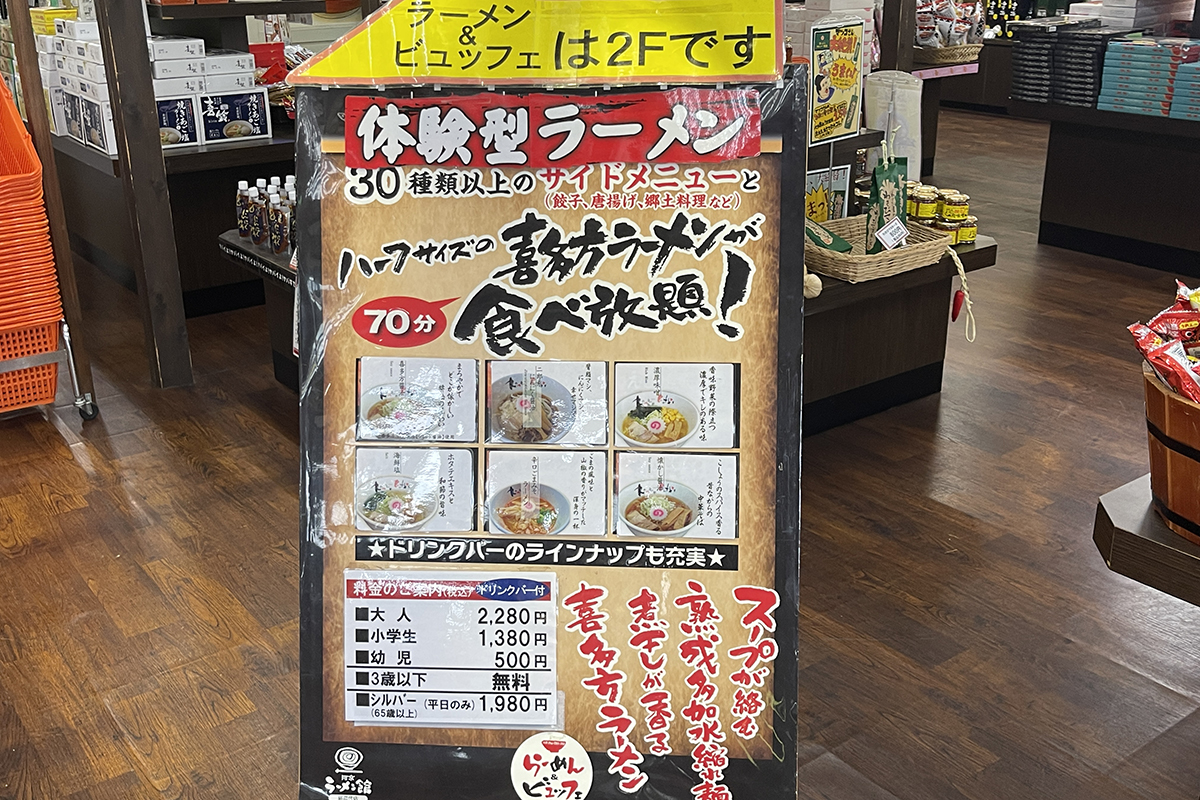 ただ、こちらで注目を集めているのは建物2階にあるラーメンビュッフェでしょう。