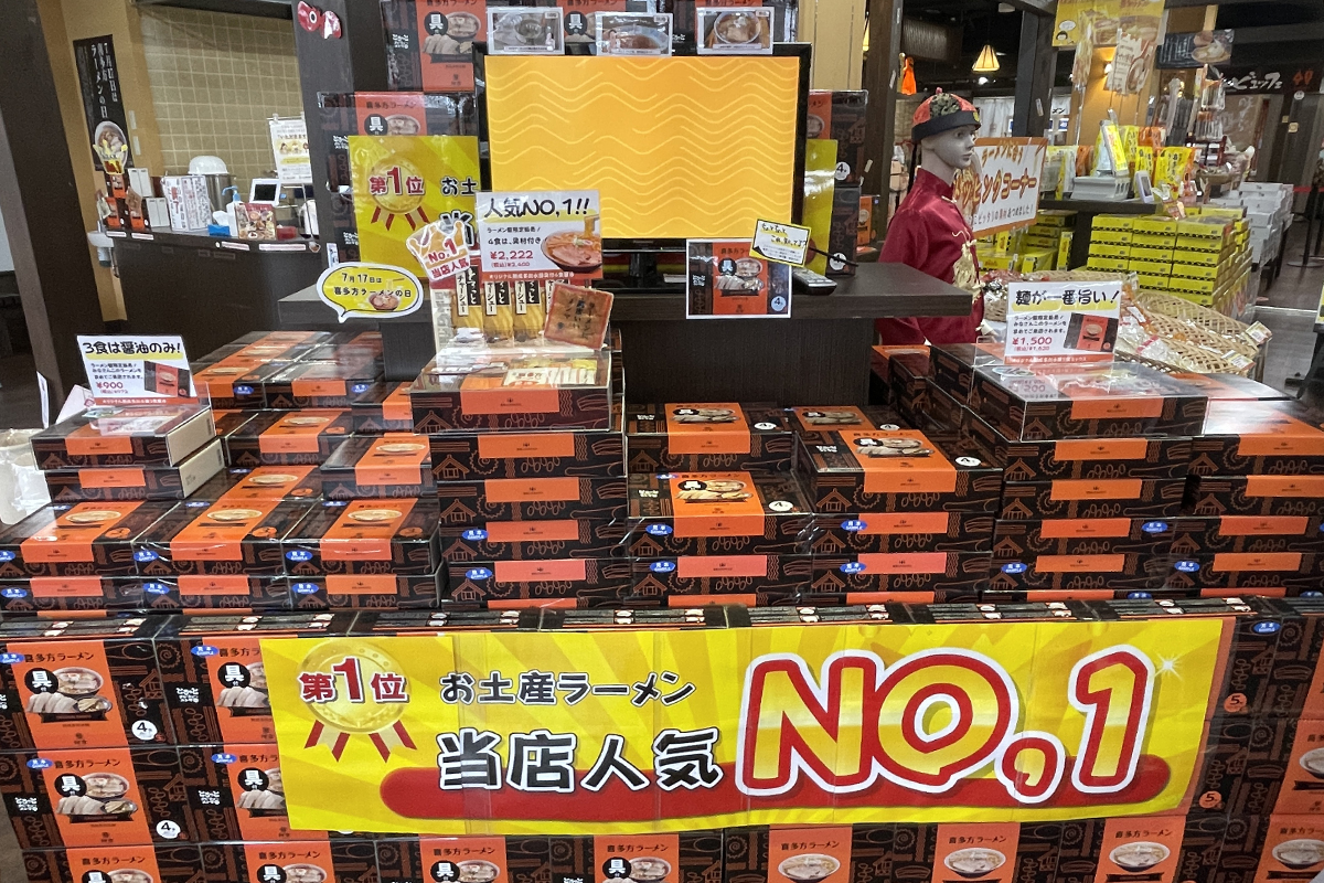 喜多方ラーメンを中心に様々なラーメン関係のお土産が販売されています。