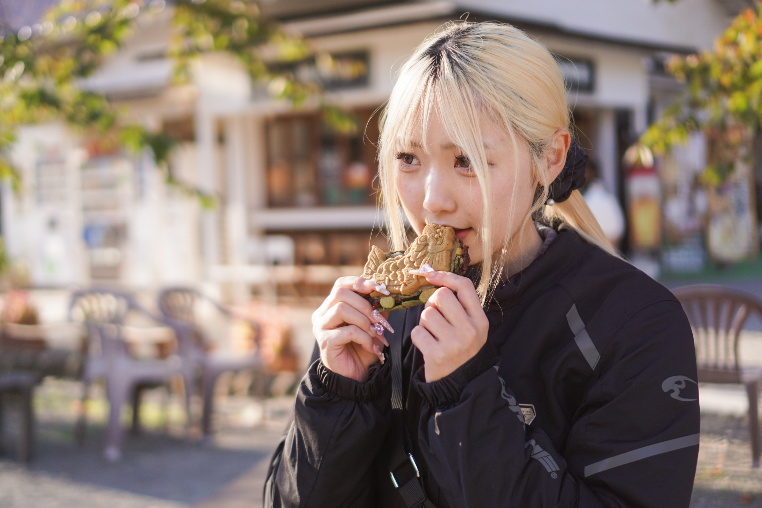 城を見ながらベンチでスイーツを楽しめるので、バイクでもおすすめの観光スポットです。