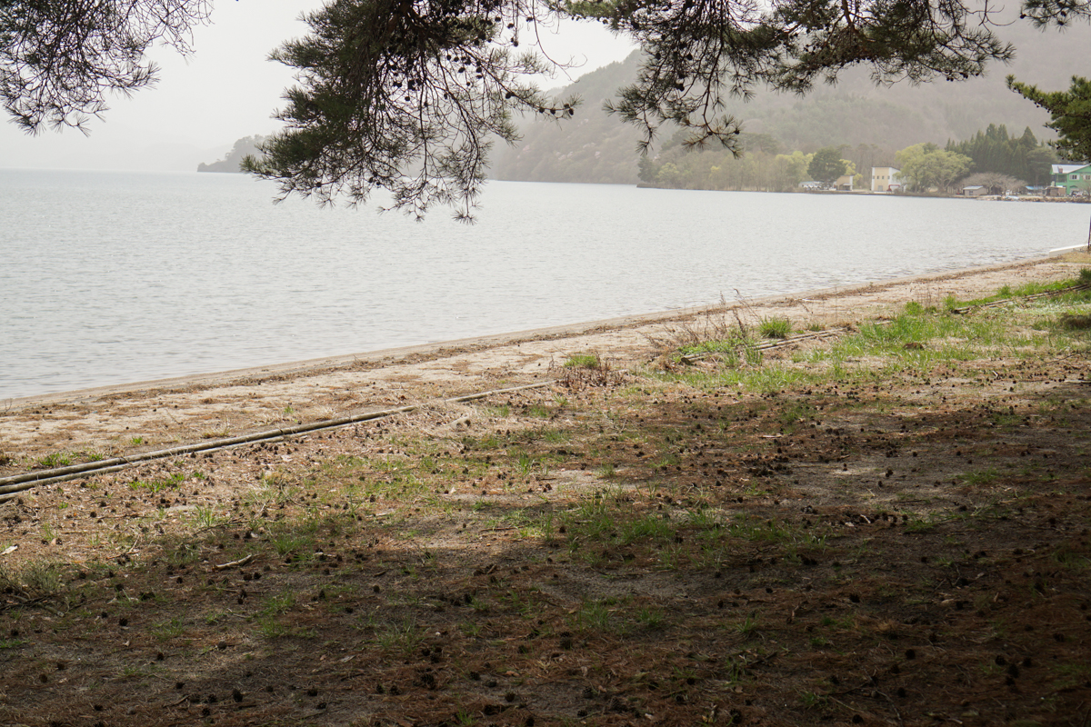 猪苗代湖西側にある崎川浜は無料でキャンプができるスポット。