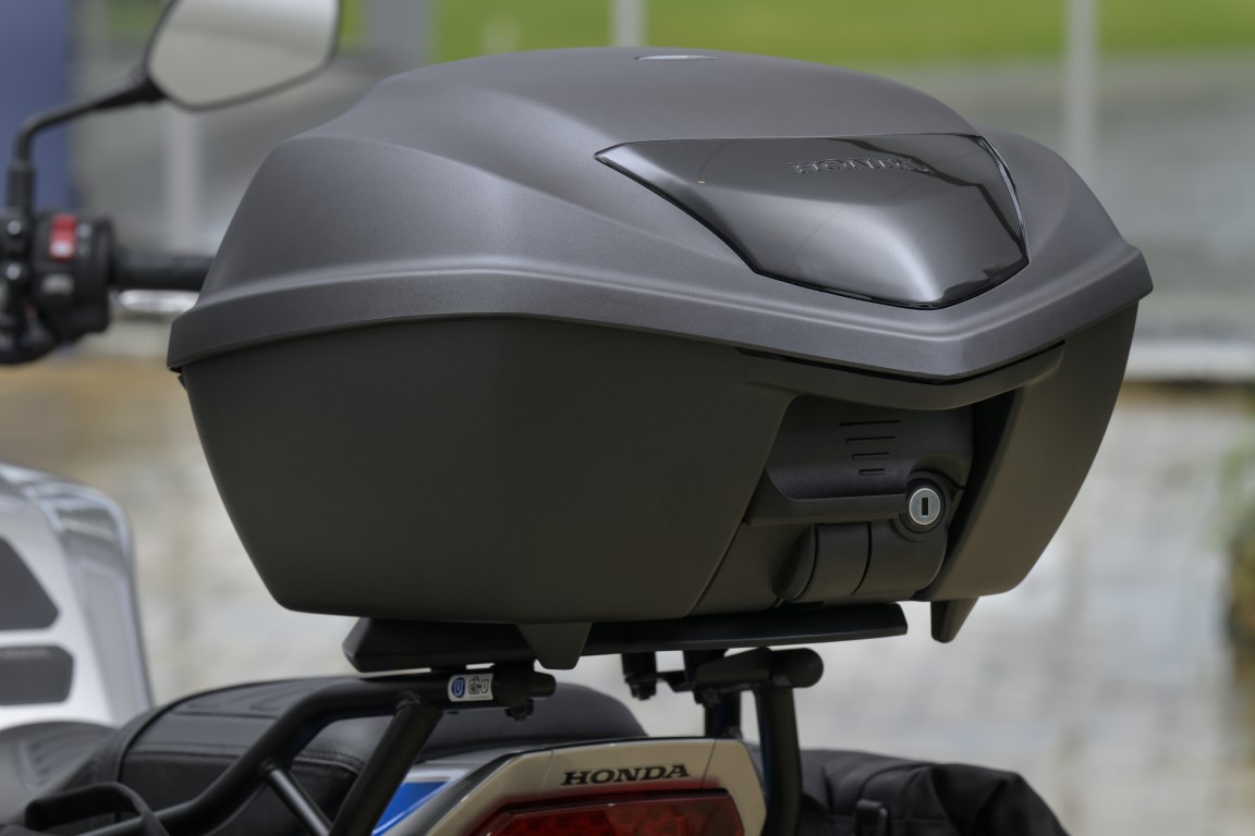 CB1000Fは荷物の積載に便利な荷掛けフックが標準で装備されていますが、トップボックスがあるとツーリング時の利便性が格段にアップできます。特にレインウェアや手荷物バッグ、飲み物など“常備したいもの”をサッと放り込んでおけるのは本当に便利。