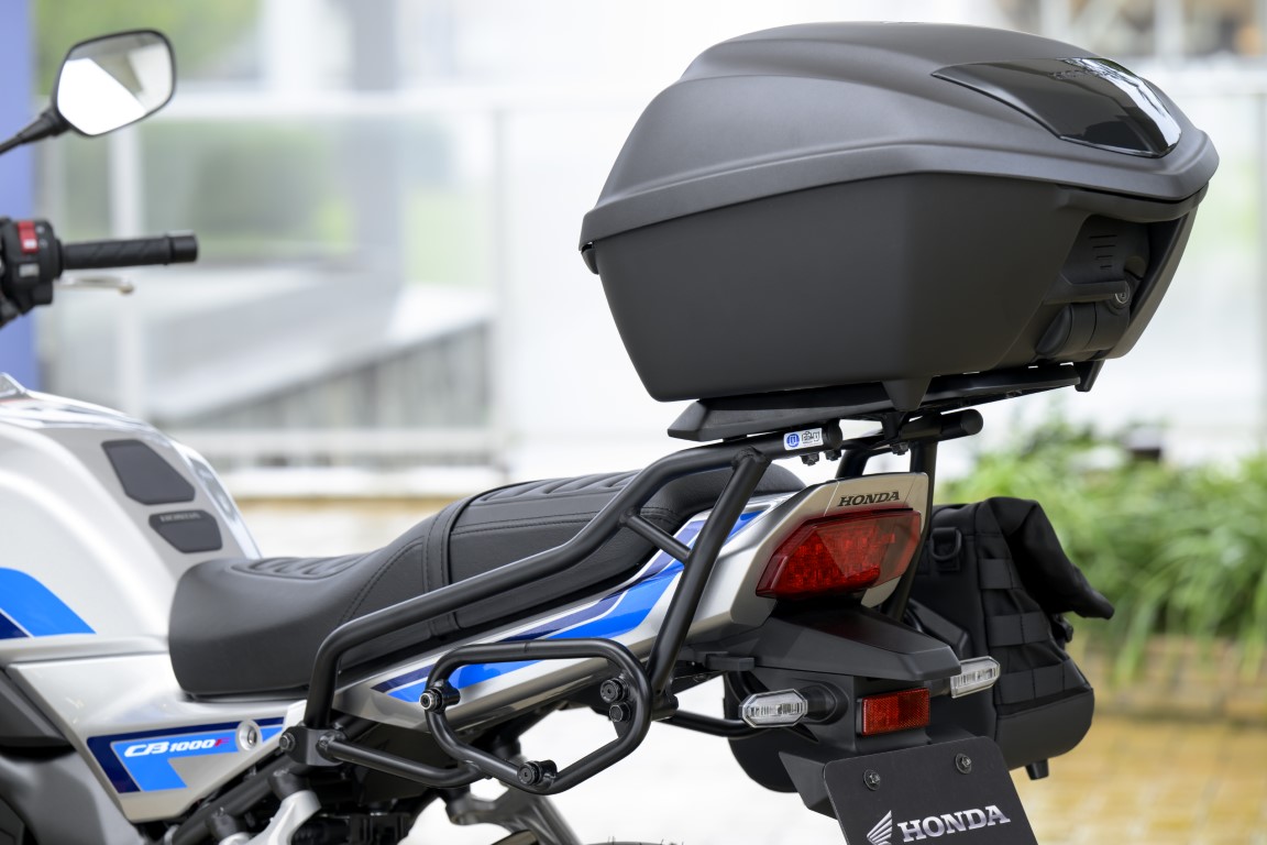 CB1000F SEは標準で装備されていますが、CB1000F用にも後付けできる専用アタッチメントキットがラインアップ。純正アクセサリーならではの取付時の美しさにも注目です。
