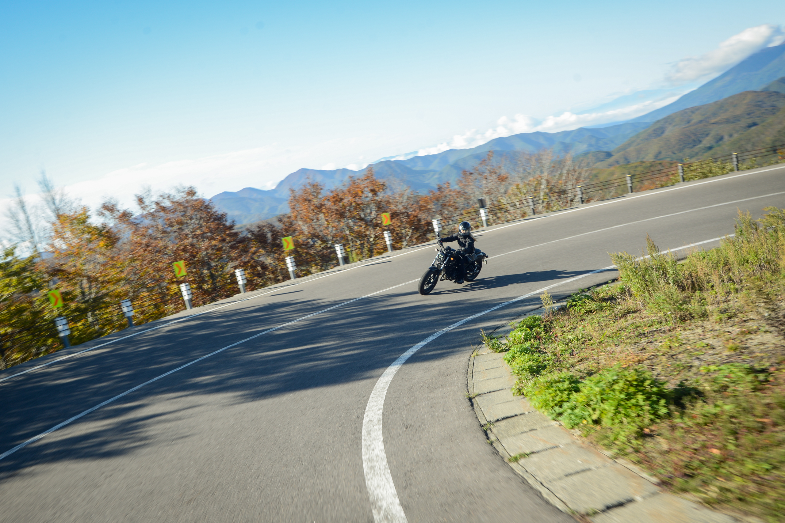 これは快適なだけでなく、慣れていないワインディングを走る際にも役立つもので、通常のバイクよりも操作が少なく振動も少ないため、より安全に楽しくワインディングを楽しむ事ができます。