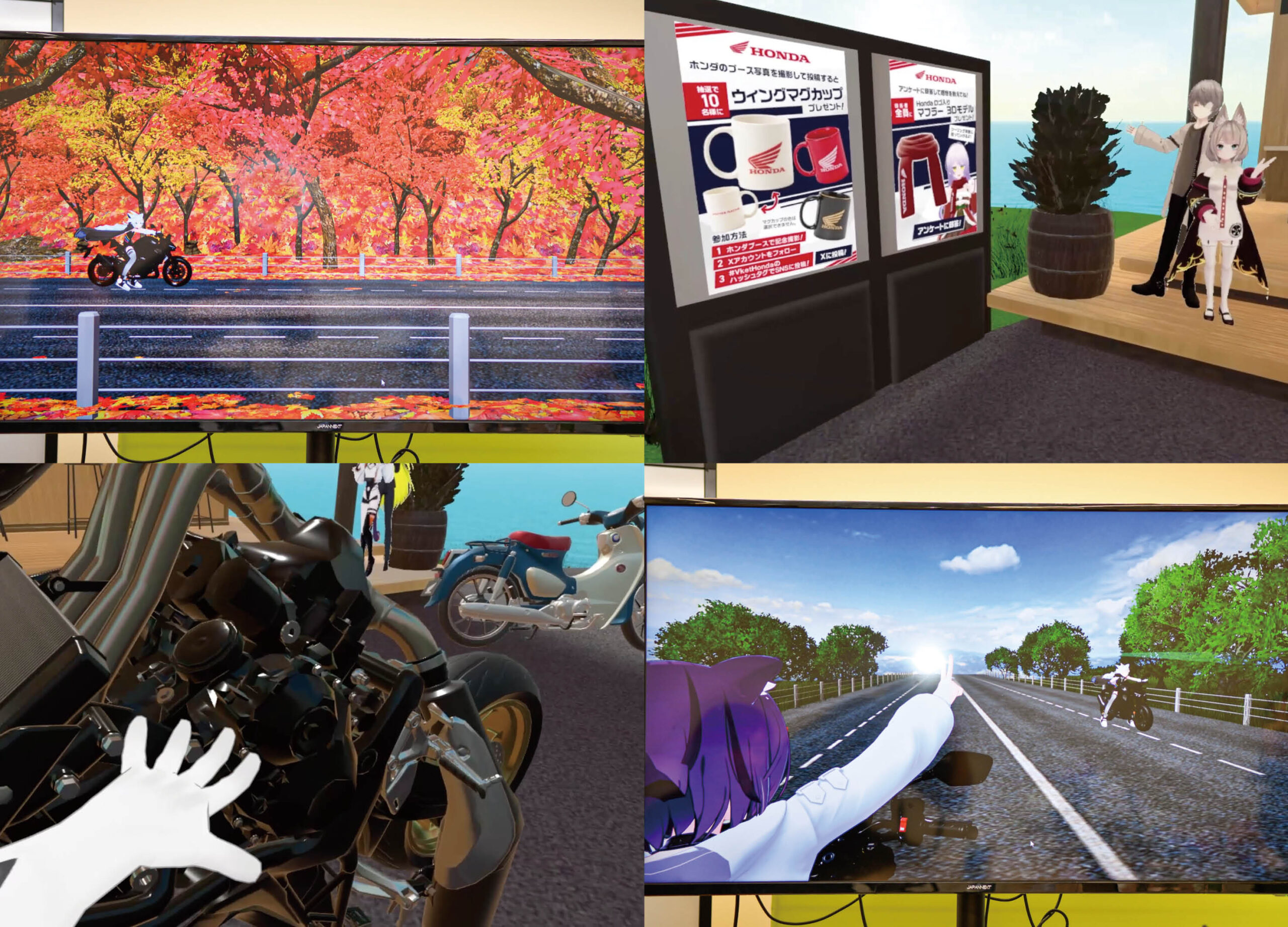 バーチャルツーリングで訪れる目的地にはVR風の「Honda Dream Cafe」もあって、休憩もできますし、自動で撮影したバーチャルツーリング中の自分(アバター)を、カフェのディスプレイで見ることもできちゃいますよ。