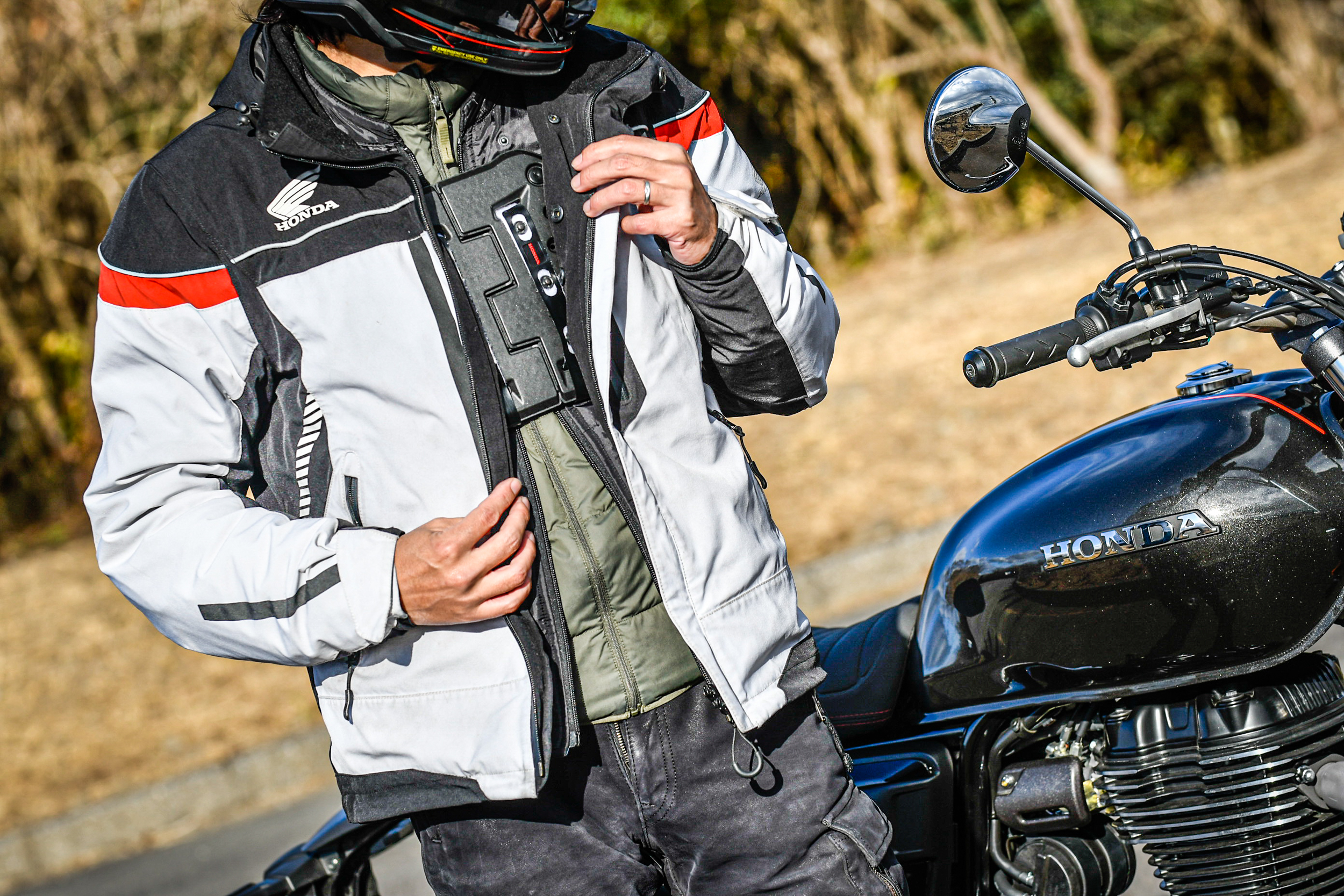 今回、実走テストしたHonda テクセルセパレートチェストプロテクターは、バイク用ライディングウェアを展開するRSタイチとコラボレーションした着用性と安全性の高い胸部プロテクター。