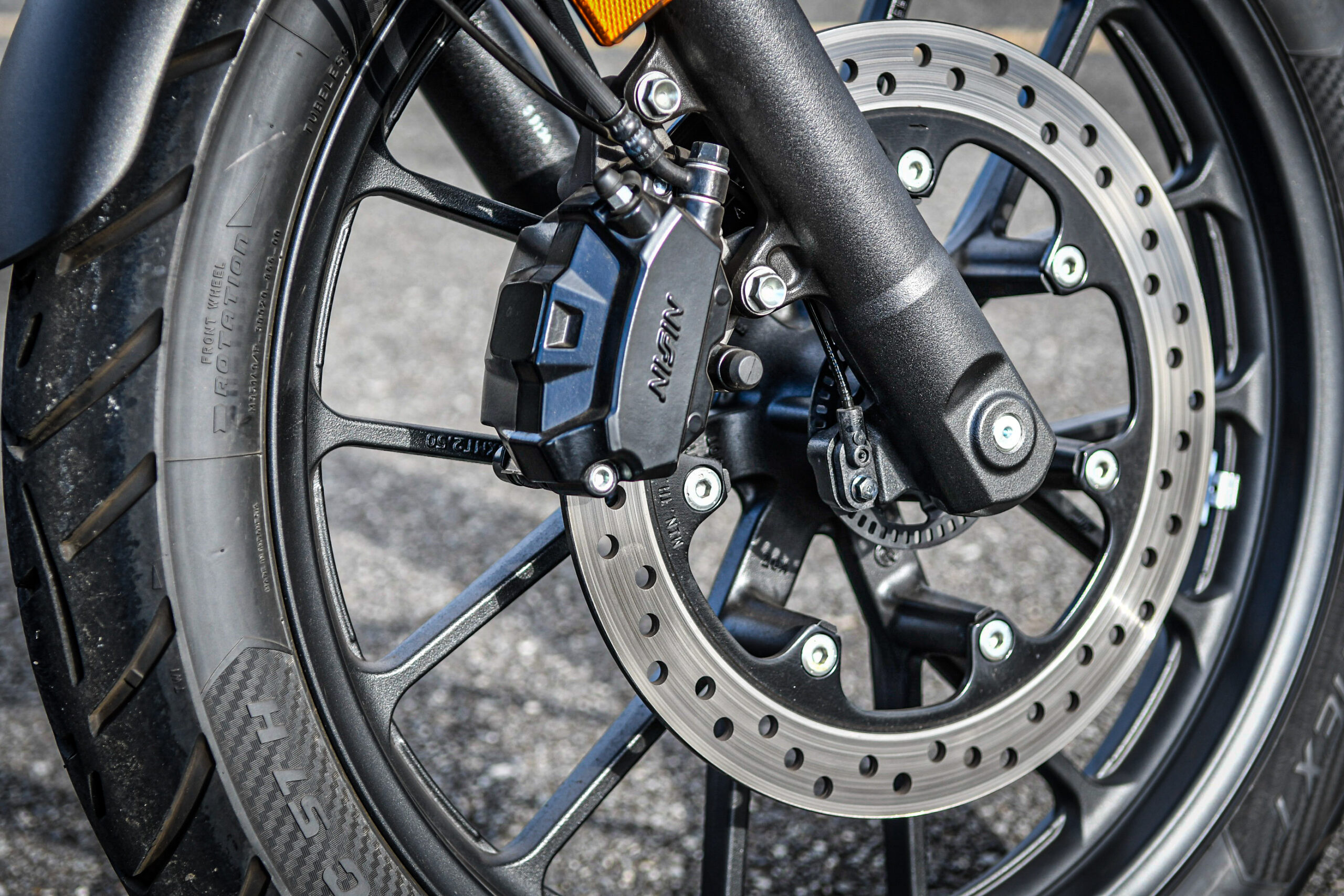 まずはブレーキについて。大径のシングルディスクを装備して絶対的な制動力と性能の安定的な供給を実現していますが、大排気量スポーツが装備するようなダブルディスク&ラジアルマウントされた高性能ブレーキキャリパーの効きに比べれば当然ですが物足りません。だからライダーはパーツ自体の性能頼みではなく、車体やタイヤの許容範囲内でブレーキをコントロールする必要がある。