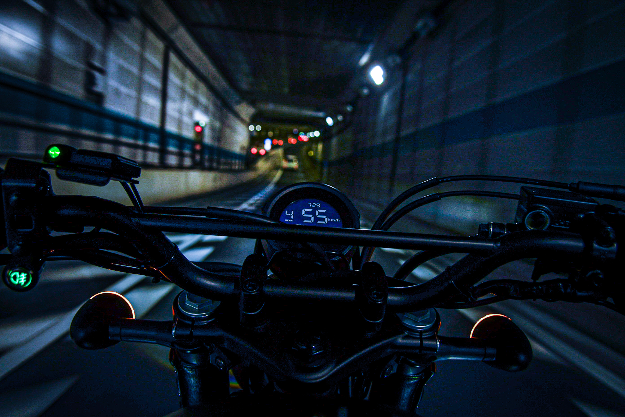 フォクランプKITを点灯させれば夜の街でも存在感は抜群です。ブラックアウトされた車体だけどこの明るさがあれば安全面でも安心だな……なんてことも考えつつ、気分よく夜を駆けぬけることができます。これらはノーマルのCL500の「バイクとしての基本性能の高さ」が根本にあることで成立しているのは間違いないのですが、まさかこれほどまでに高揚感のあるバイクに変身しているなんて予想外です。