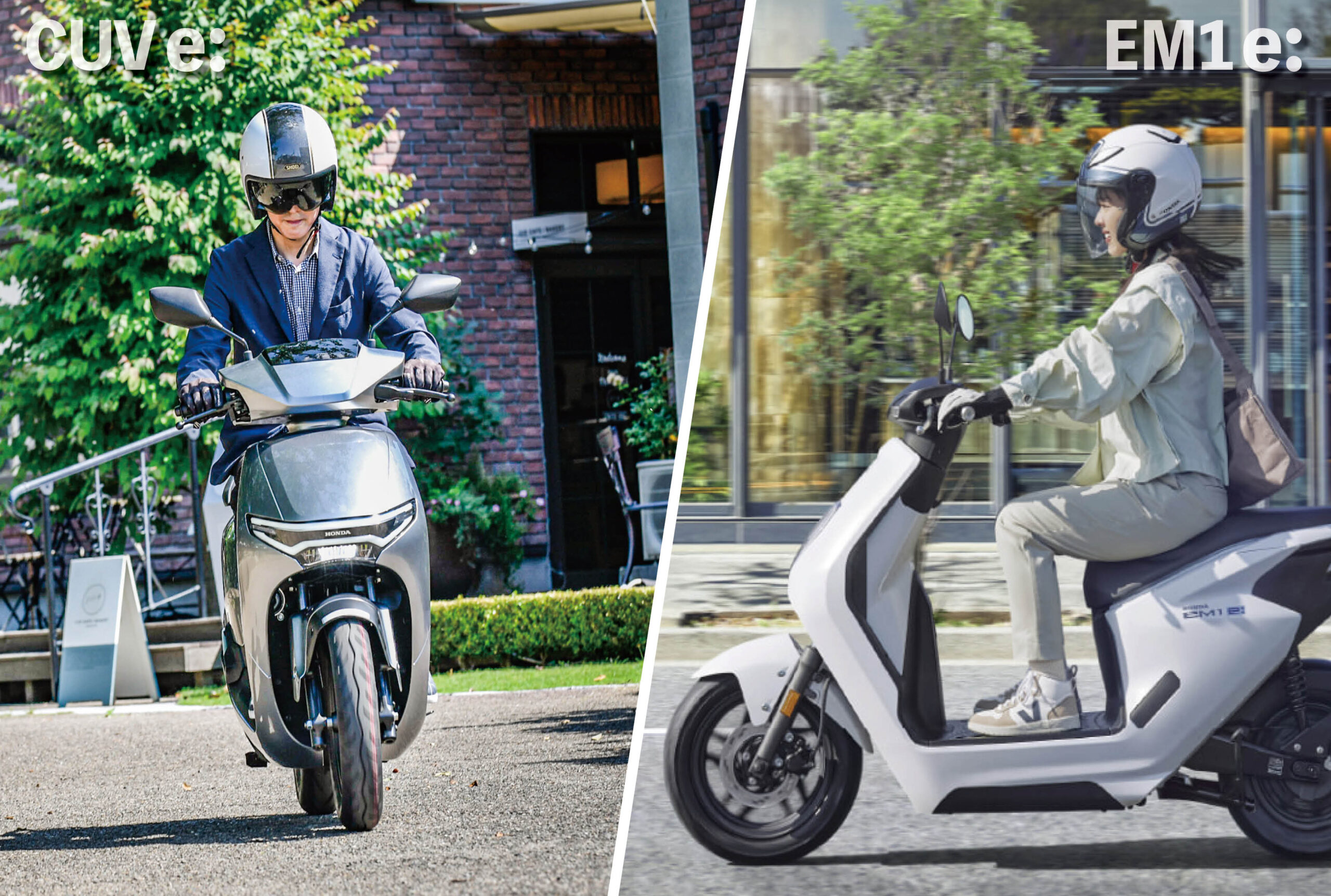 【左】Honda「CUV e: 」(原付二種クラス)、【右】Honda「EM1 e: 」(原付一種クラス)