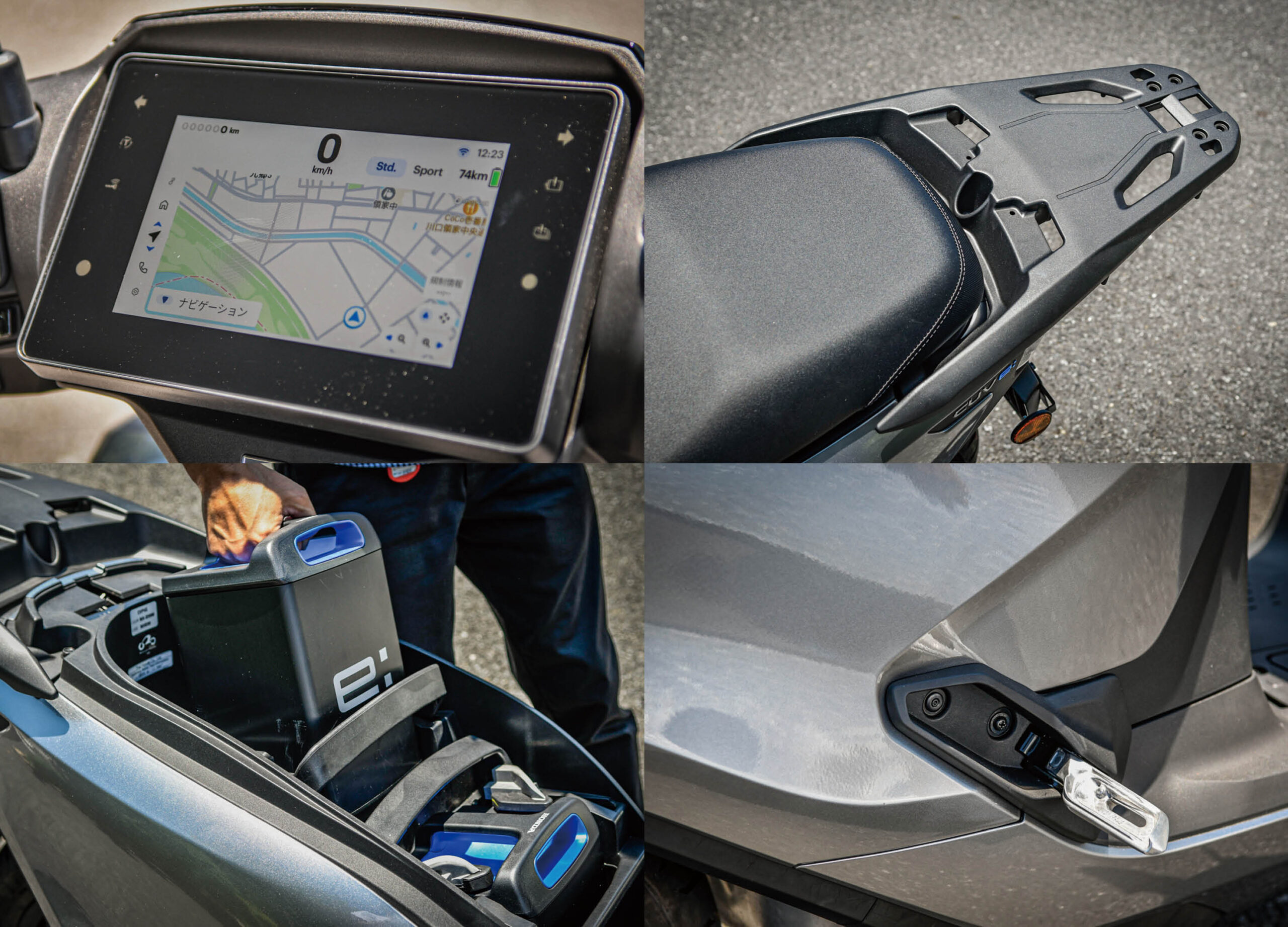インストルメントパネルには見やすいTFTディスプレイが採用され、走行情報やバッテリー残量、航続可能距離などが直感的に把握できます。また、Honda独自のコネクティビティ機能「Honda RoadSync Duo」に対応したモデルでは、スマートフォンと連携してナビゲーション表示や音楽再生、通話なども画面で操作が可能です。