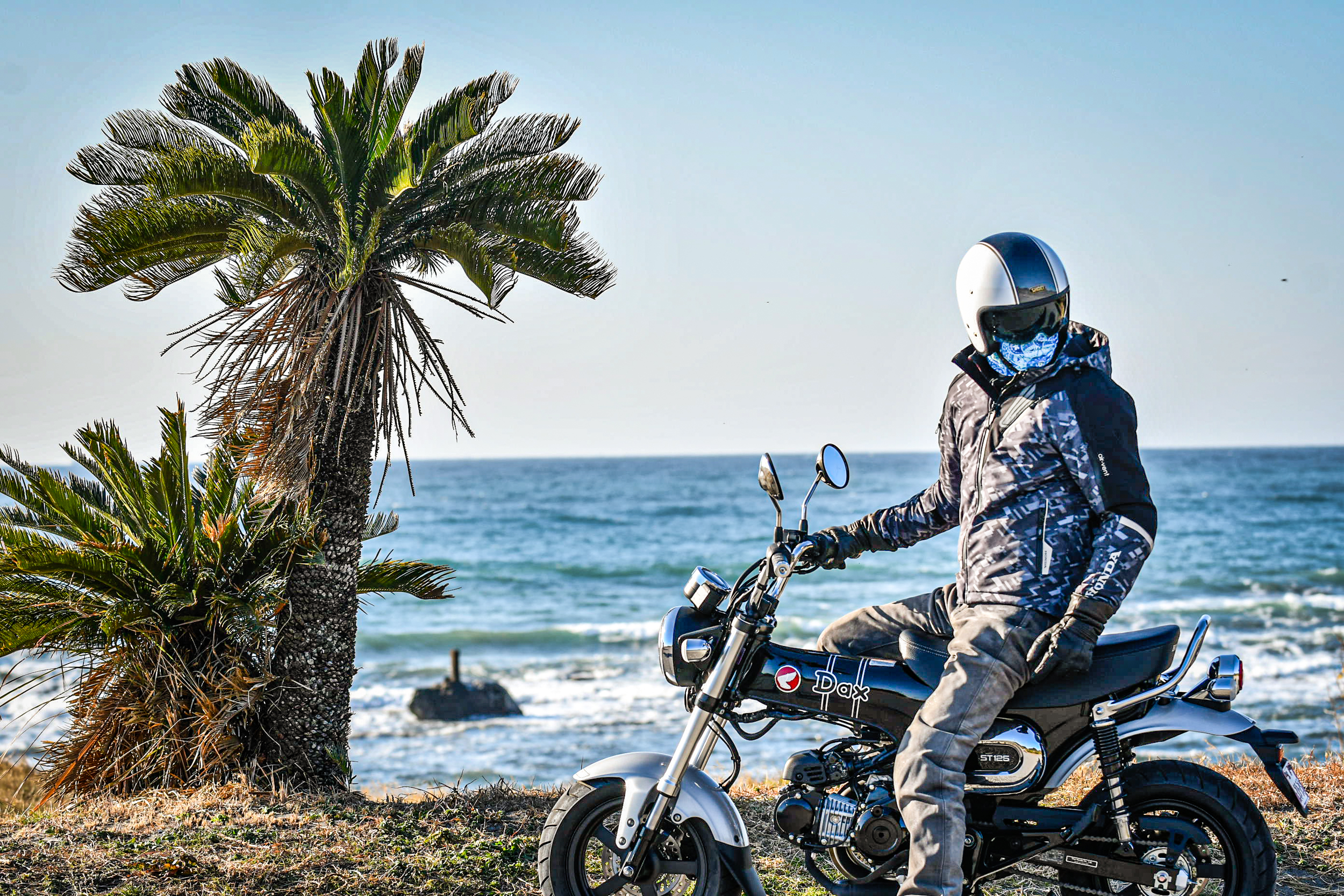 海岸線をラフなスタイルで流して、お気に入りのカフェへ行っちゃうイメージ。コーナリング性能とかライディングテクニックとか、そういうのじゃない。晴れた日に空いてる海岸線を何も考えずに走って、風を感じるだけでいい。アクセルを開けて軽やかにスピードがのっていく気持ちよさに浸る。ダックス125はそれが至福に感じられるバイクだと思います。
