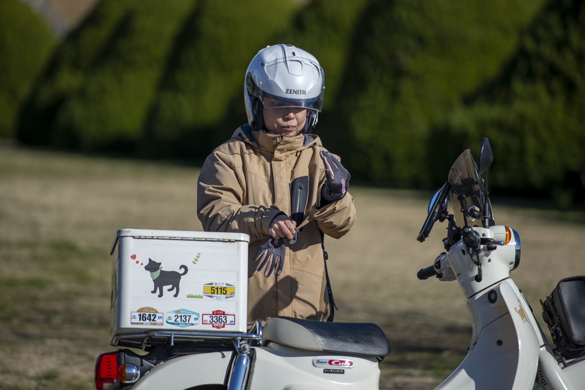幸恵さんはスーパーカブ110で自走しました。
