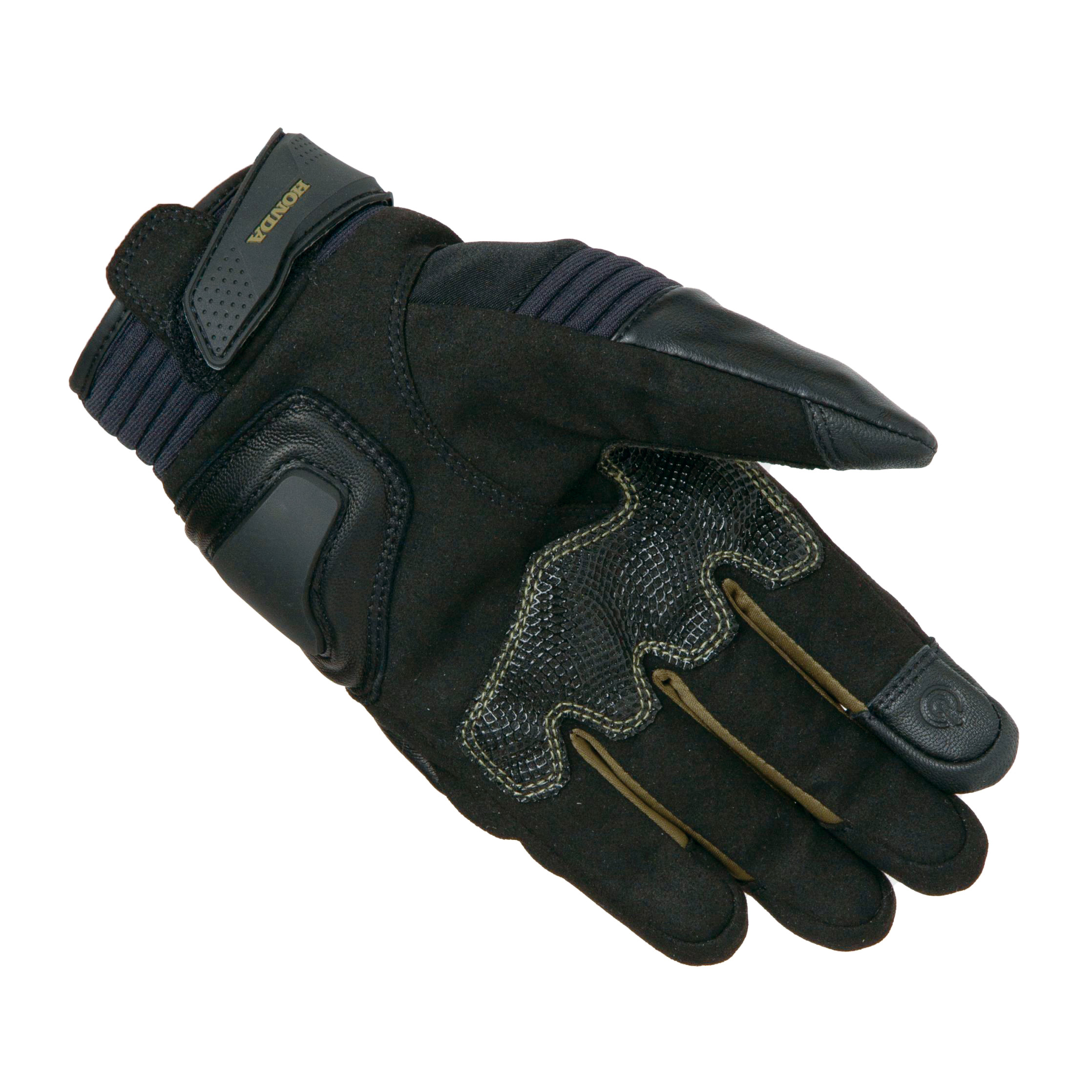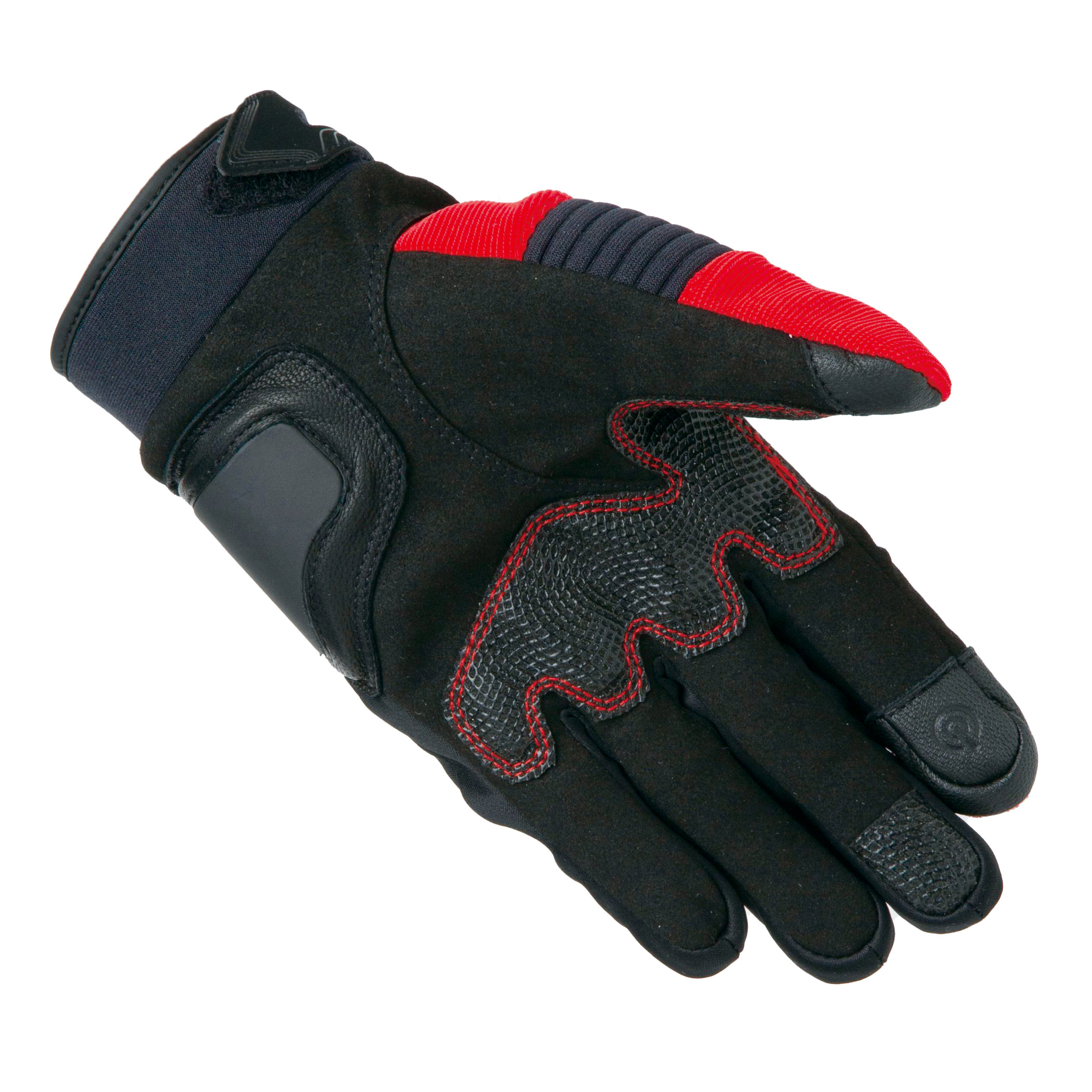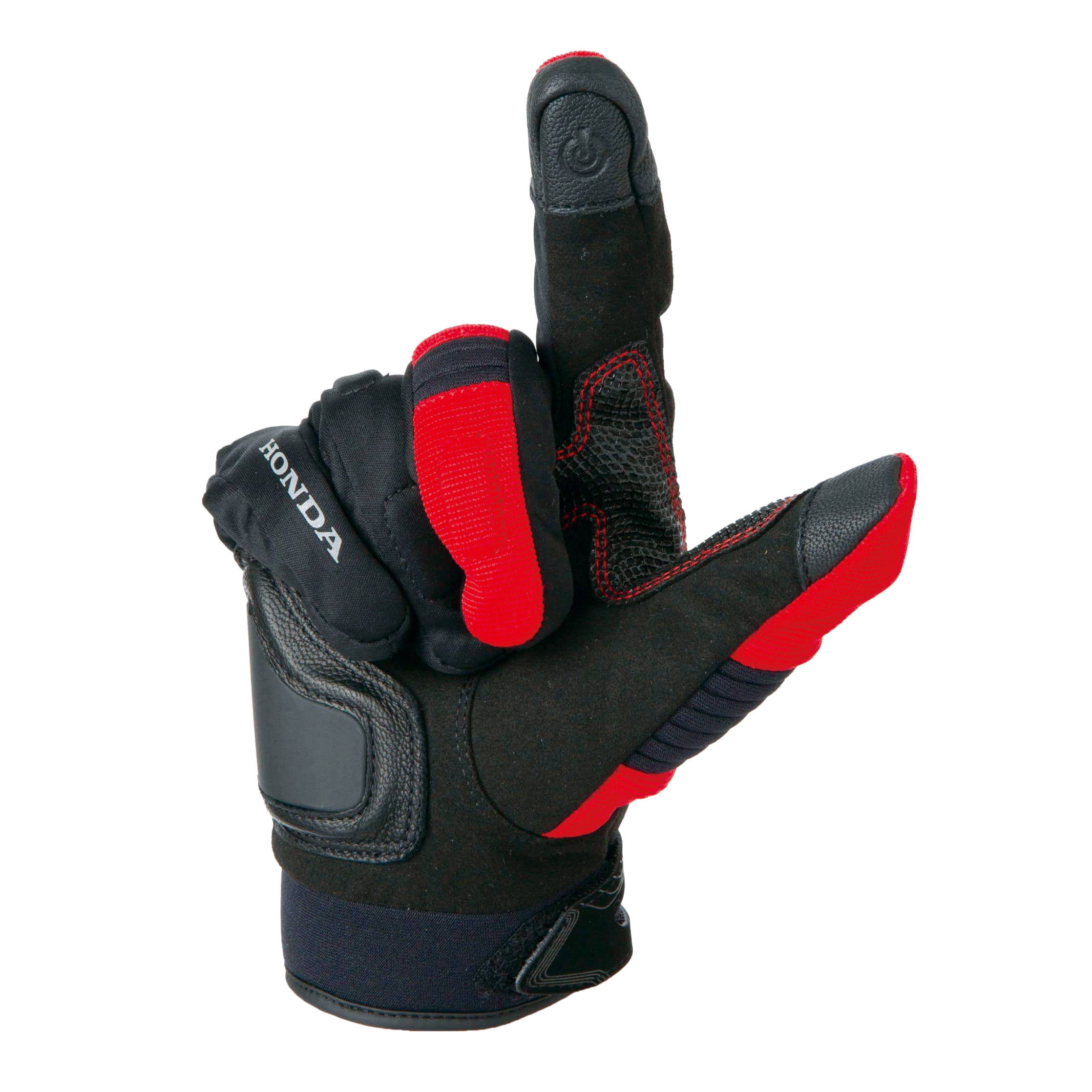 人差し指と親指には、スマホ操作可能な特殊皮革を採用。掌には転倒時の衝撃を逃す、スライダーが備わる。
