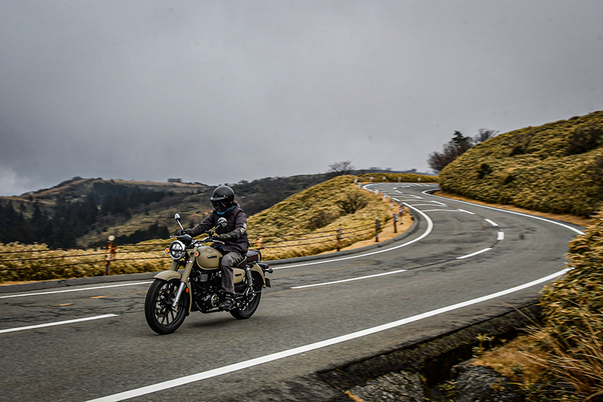 時速90km前後では走行風もそれほど強くは感じないし、スピードが出ている訳じゃないから精神的にも体力的にも疲れない。時間を忘れるというか……気が付くとけっこうな距離を走っている。GB350 Cは『雰囲気に浸る』という数字には現れない性能でライダーを遠くまで運んでくれるんです。
