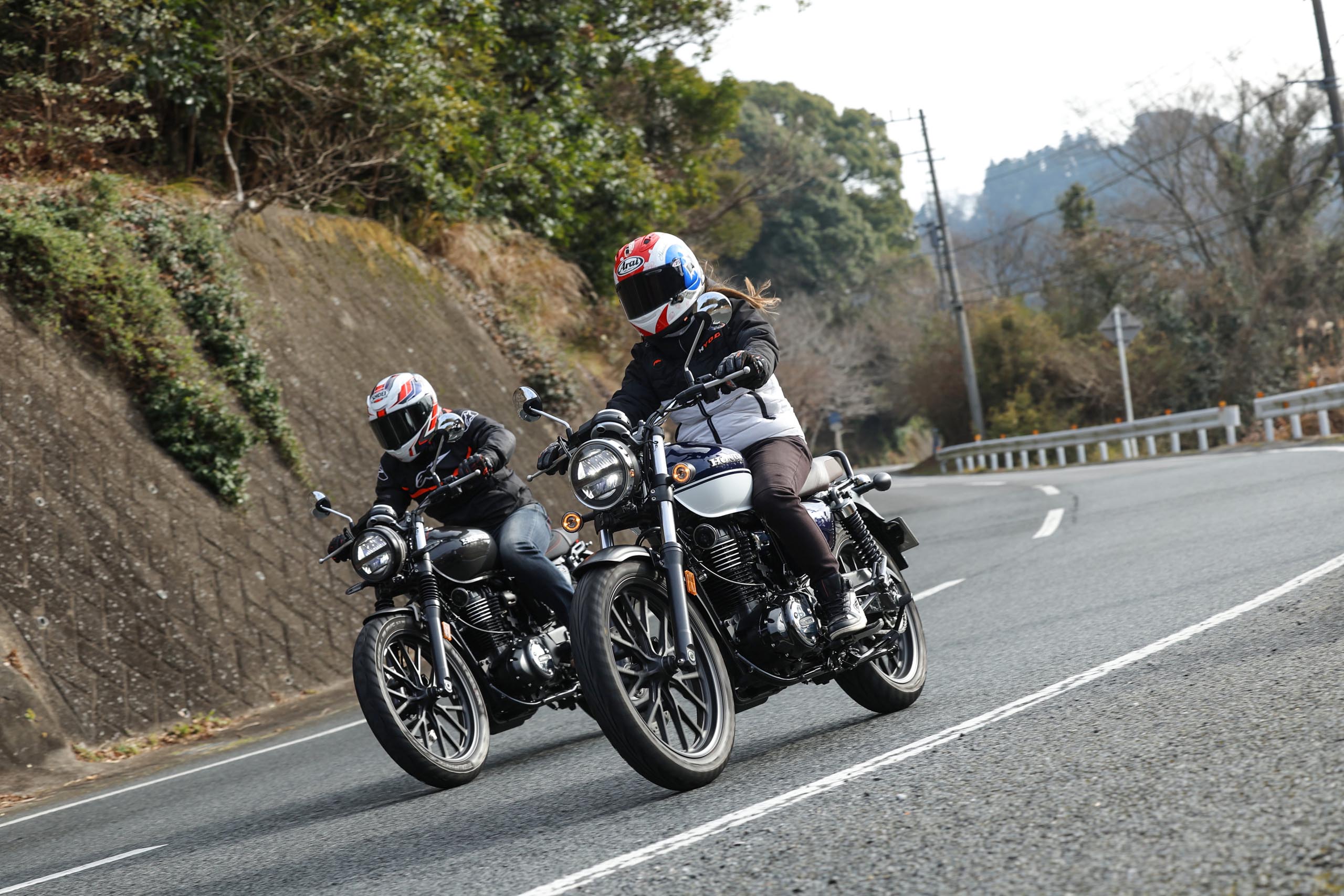 2)スポーツ性:バンクさせる楽しさがあるGB350 Sのほうが、スポーティな走りとの相性は良好。GB350はパタンと寝ますが、まったり走らせるのが最適!