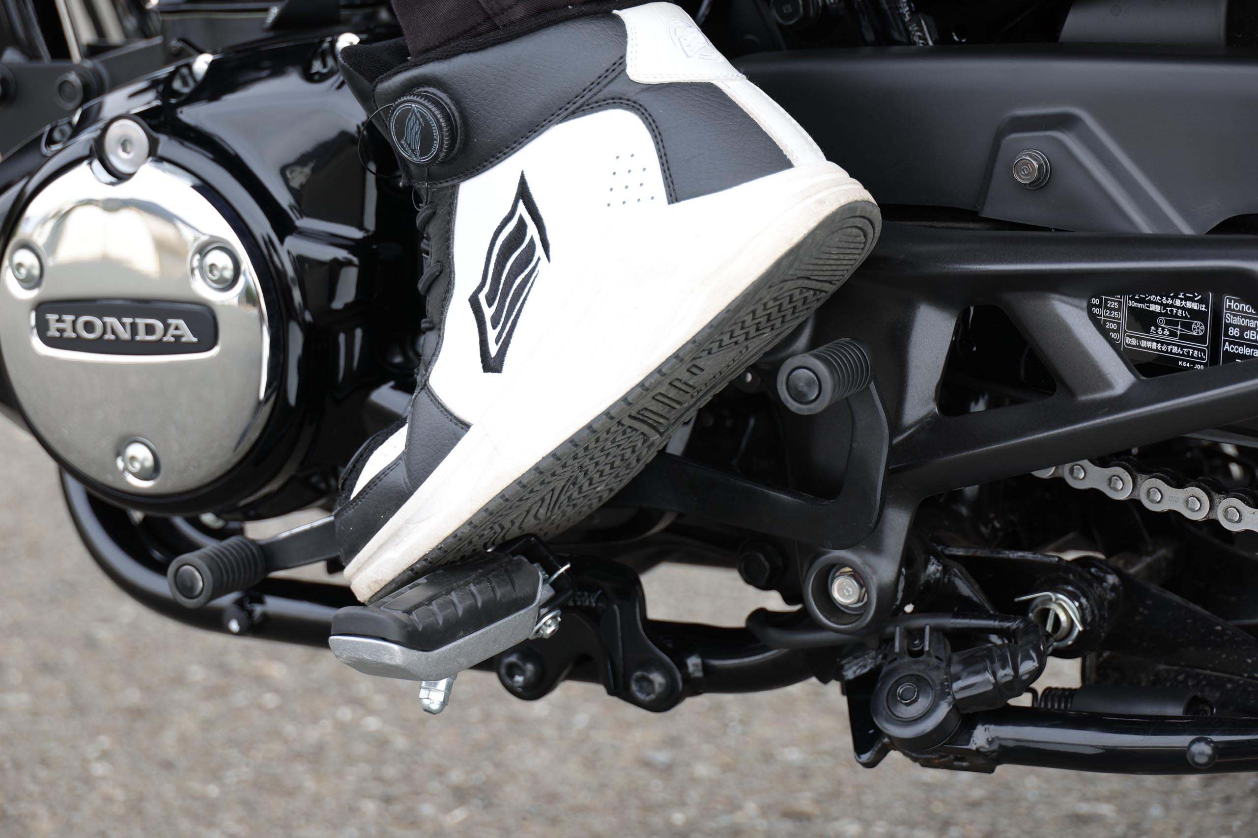 そのために欠かせないのが、専用セッティングのライディングポジション。そこまで前傾姿勢ではないし、バックステップというわけでもないですが、GB350よりもマシンへの入力がしやすい設定になっています。