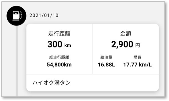 アップデートされた給油履歴の画面です。